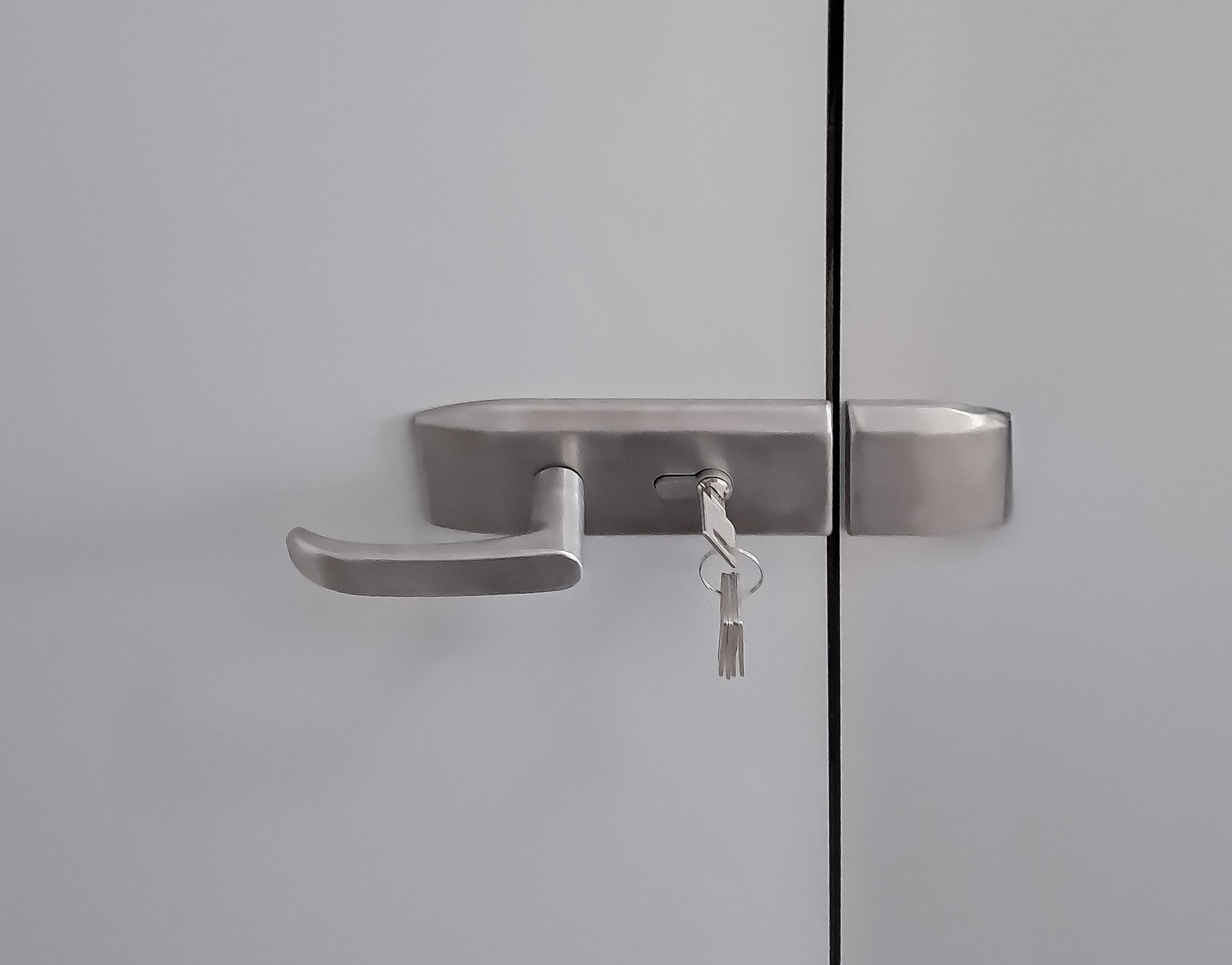 | Dveře: | dřevotřísková deska tl. 18 mm, samouzavírací panty, nerezový zavírač se signalizací volno/obsazeno, barva standardní šedá nebo bílá, další barvy za příplatek |