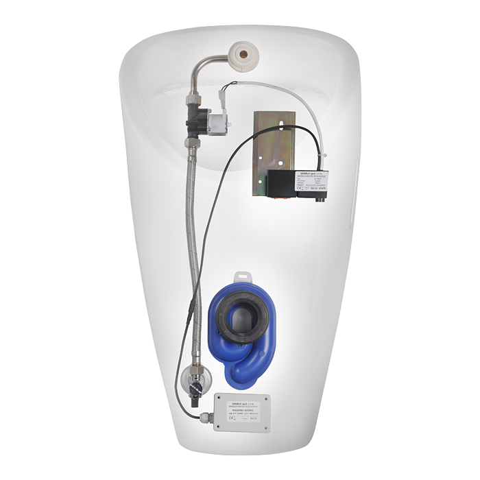- nastavení parametrů a komunikace s elektronikou pomocí aplikace Sanela control (Bluetooth) nebo dálkového ovladače SLD 04 bez nutnosti demontáže pisoáru (akustická indikace nastavování)