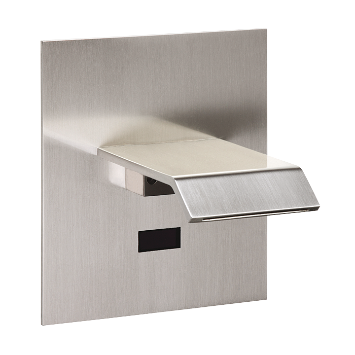 Automatická nerezová nástěnná umyvadlová baterie s elektronikou ALS pro jednu vodu s designem vodopádu, 6 V, povrch lesklý