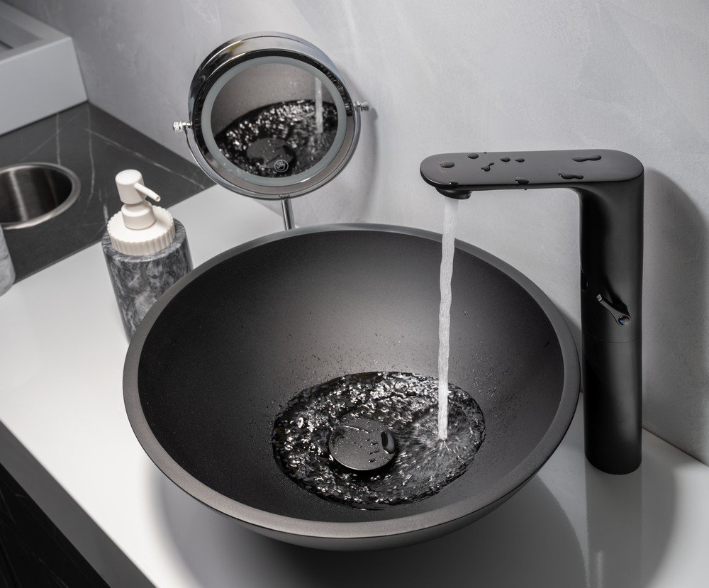 Stojánková vysoká umyvadlová směšovací baterie s elektronikou ALS, černá, 6 V