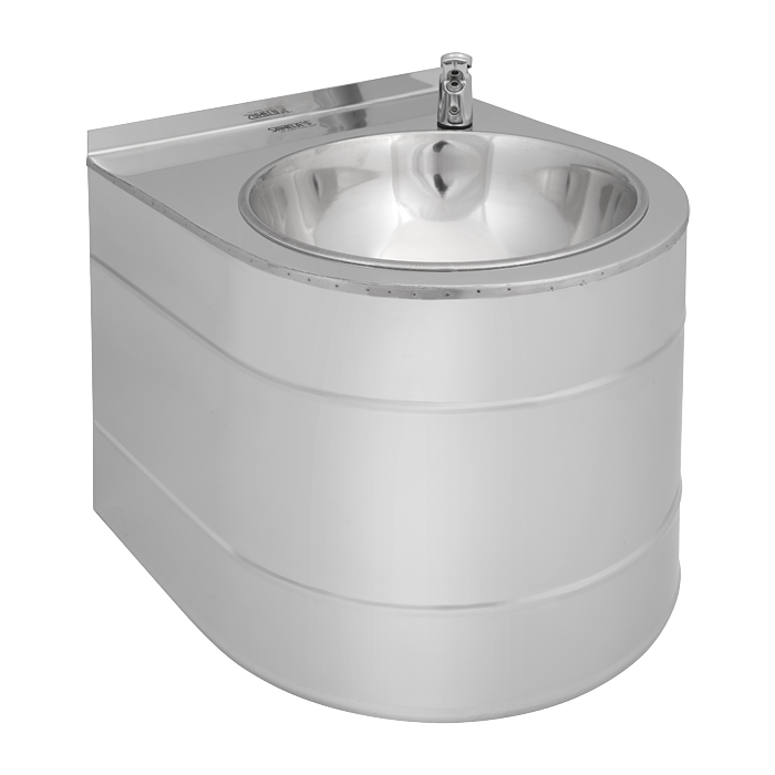 - závěsná nerezová pitná fontána s tlačnou armaturou