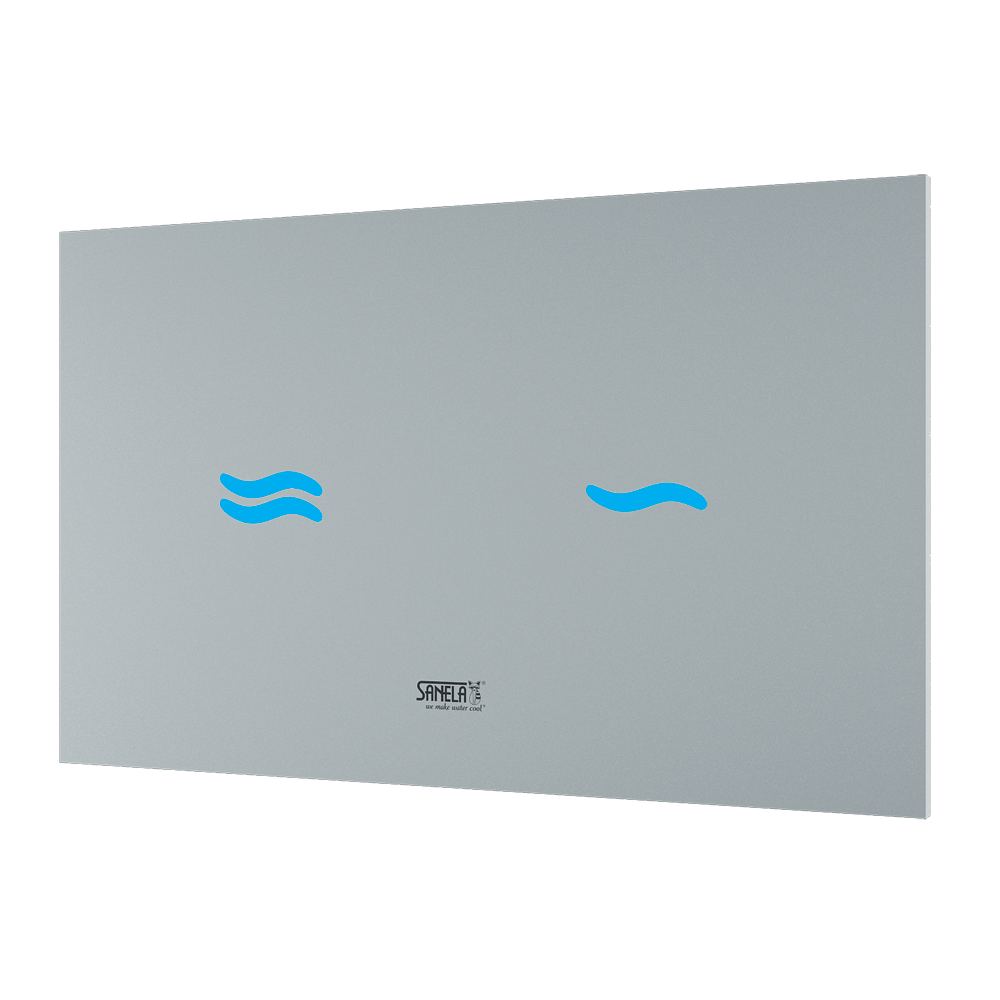 Elektronický dotykový splachovač WC s elektronikou ALS do montážního rámu SLR 21, barva skla bílá REF 9003, podsvícení modré, 24 V DC