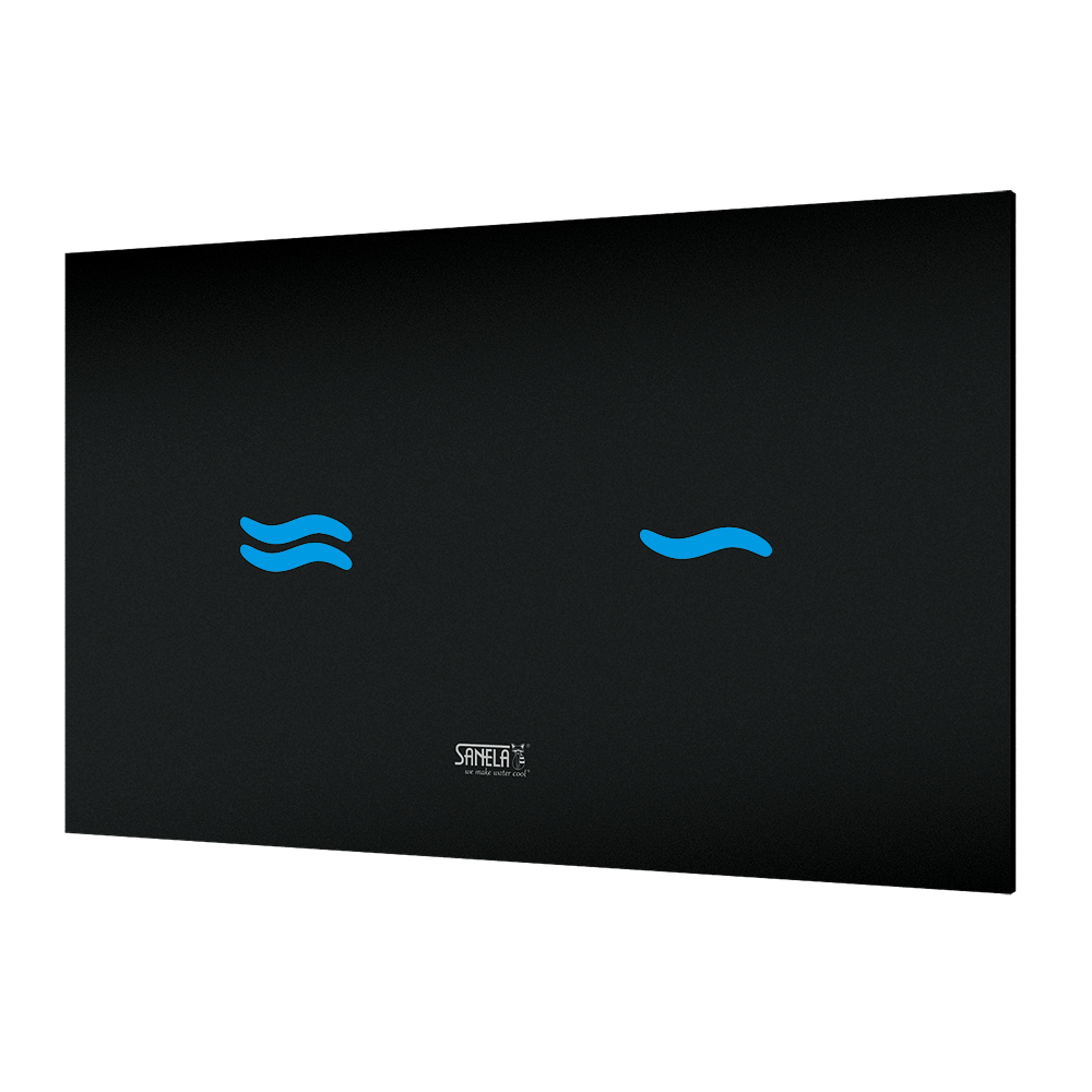Elektronický dotykový splachovač WC s elektronikou ALS do montážního rámu SLR 21, barva skla černá, podsvícení modré, 24 V DC