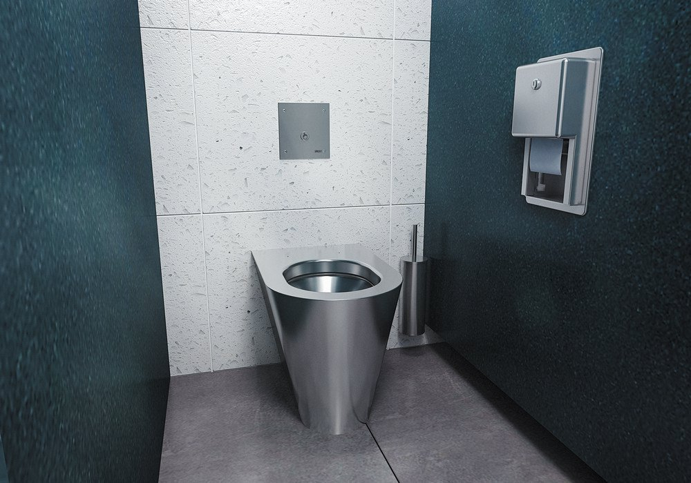 Nerezové WC na podlaze stojící k uchycení na stěnu