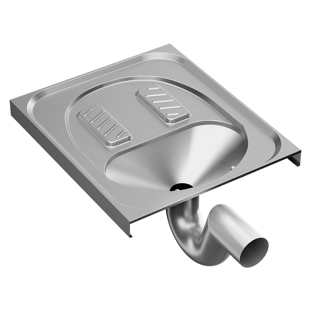 SLWN 07 - obj. č. 94070 - nerezové nášlapné WC, dvě splachovací hlavice, nerezový sifon