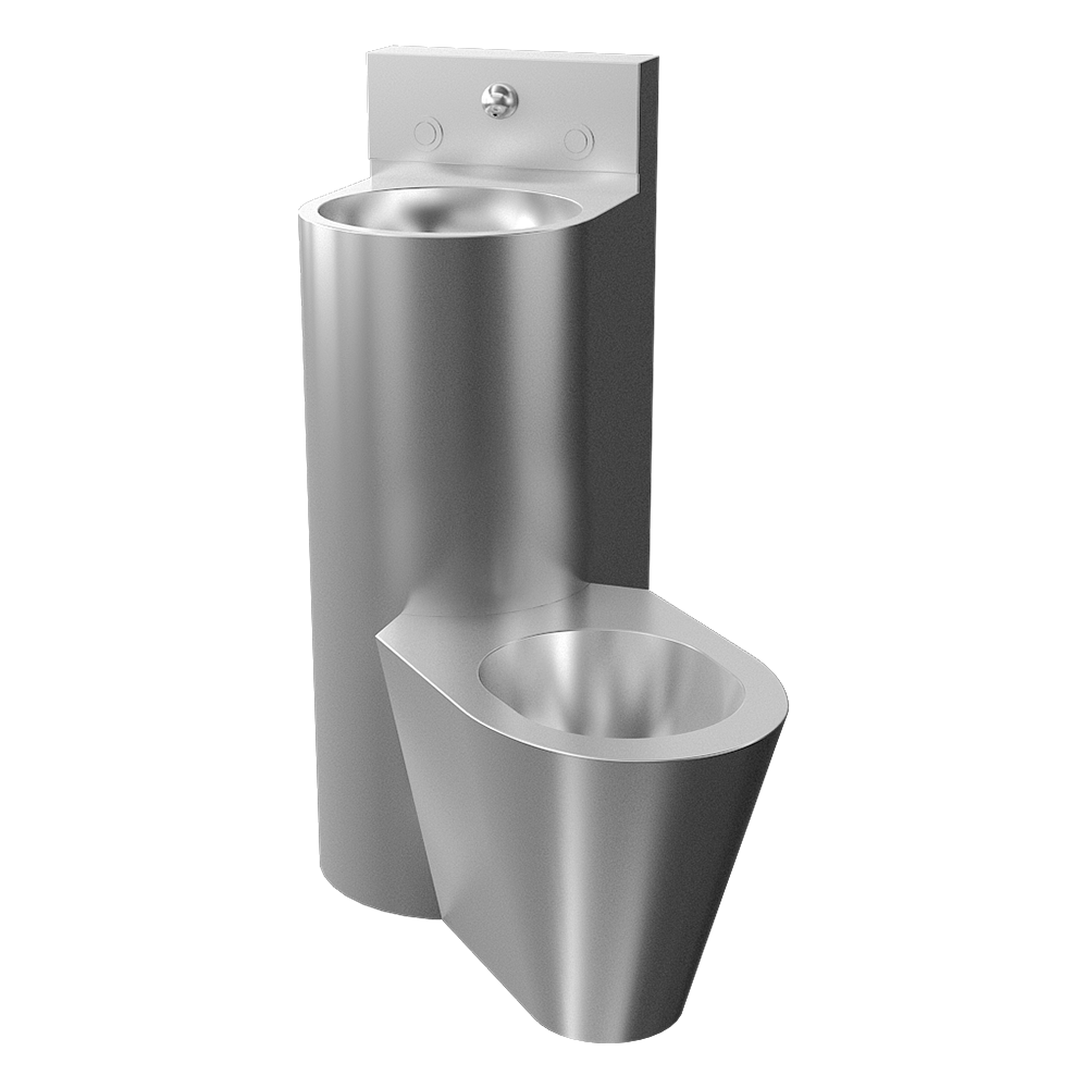 SLWN 08P - obj. č. 94082 - nerezový kompaktní set WC s umyvadlem, tlačný ventil (2 ks), umyvadlová armatura, závitová tyč M10 (6 ks), propojovací set