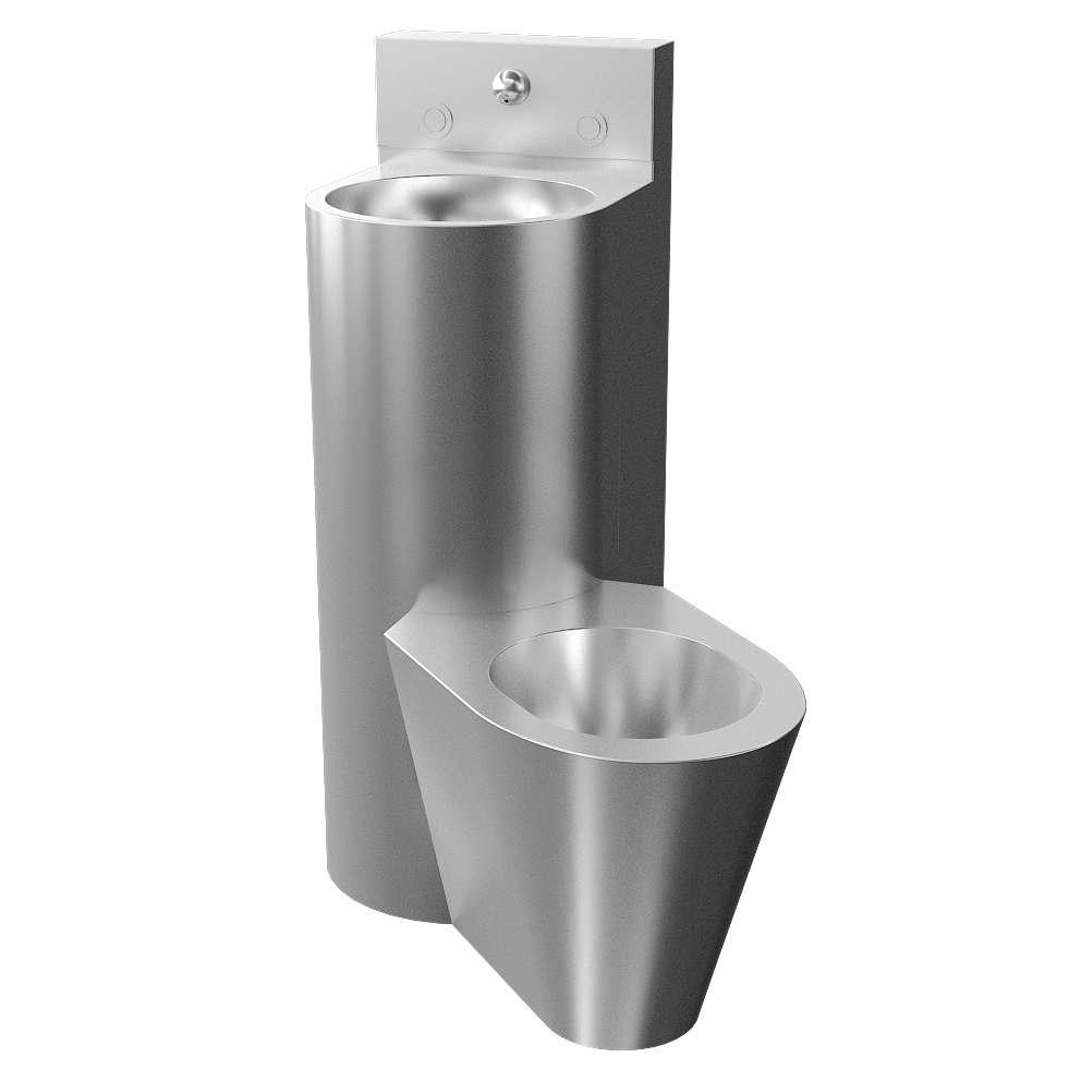 SLWN 18P - obj. č. 94182 - nerezový kompaktní set WC s umyvadlem, tlačný ventil (2 ks), umyvadlová armatura, úchytová sada, propojovací set