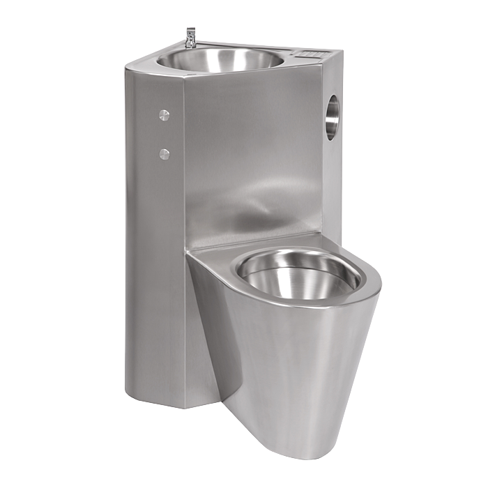 Piezo antivandalový nerezový set WC s umyvadlem do rohu, závěsné WC vpravo