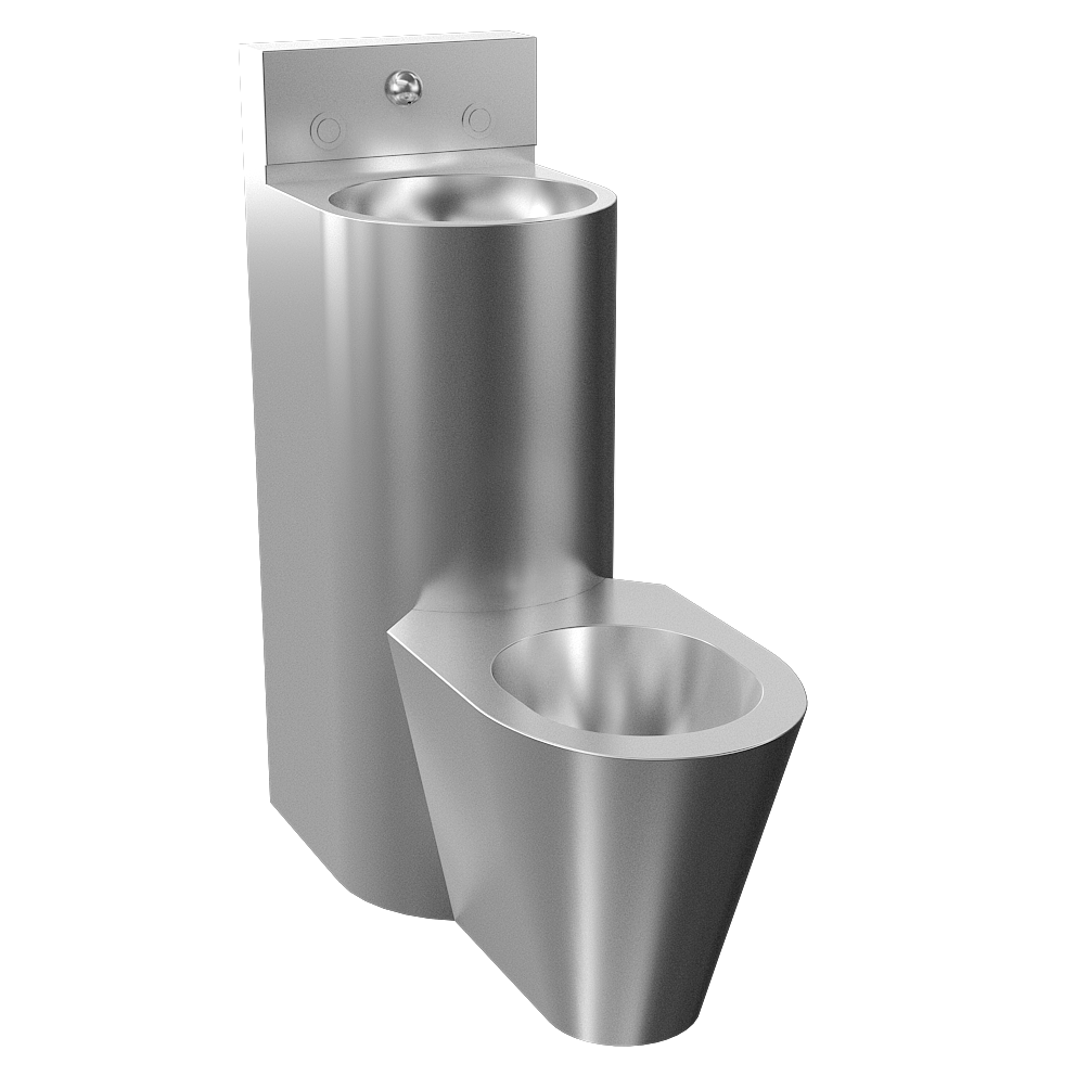 SLWN 28 - obj. č. 94282 - nerezový kompaktní set WC s umyvadlem, tlačný ventil (2 ks), umyvadlová armatura, závitová tyč M10 (6 ks), propojovací set