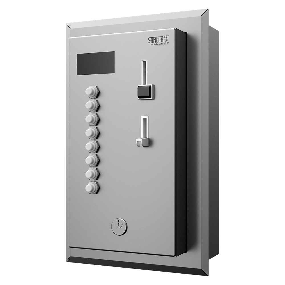 - nastavení parametrů pomocí dálkového ovladače SLD 05 (nastavení času sprchování dle hodnoty vhozené mince nebo žetonu, nastavení délky sepnutí zpoždění, možnost aktivace funkce automatického proplachu, nastavení aktuálního kurzu eura, nastavení hodnoty žetonu, nastavení kontrastu displeje, možnost vypnutí některé ze sprch)