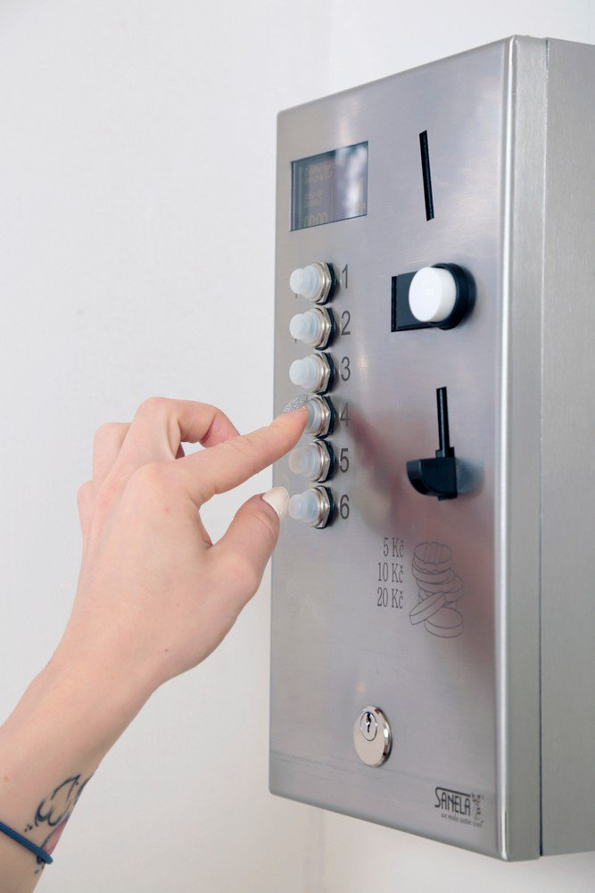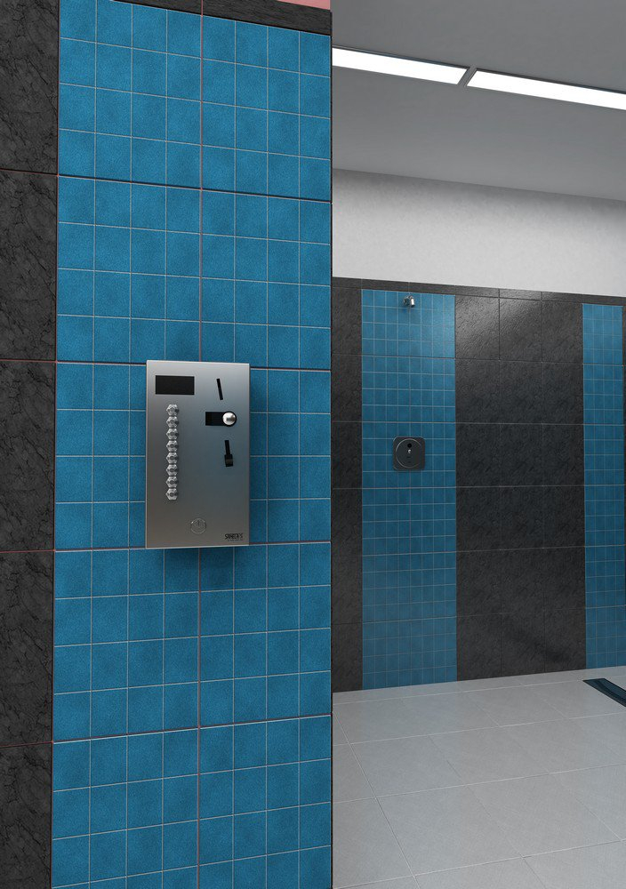 - volba sprchy automatem - po vhození mince nebo žetonu automat přiřadí sprchu uživateli a zobrazí číslo sprchy na displeji