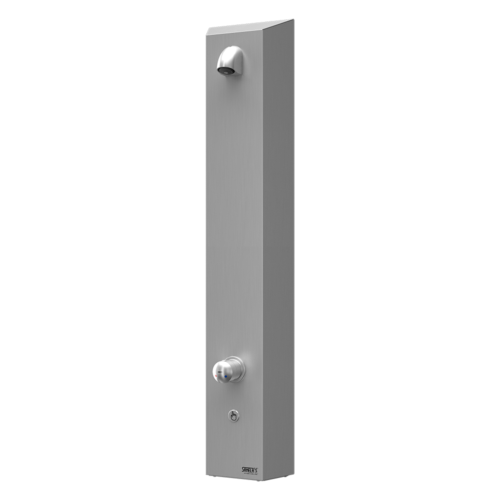 Nerezový sprchový nástěnný panel s piezo tlačítkem pro mincovní a žetonové automaty s indexem N - pro dvě vody, regulace směšovací baterií