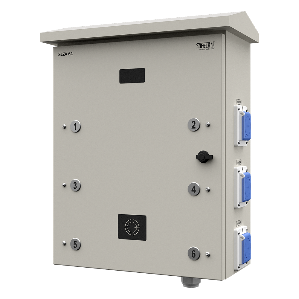 SLZA 61 - obj. č. 88610 - platební automat s řídící elektronikou včetně Bluetooth, čtečka RFID žetonů nebo karet, 6 ks jednofázových zásuvek, držák na zeď
