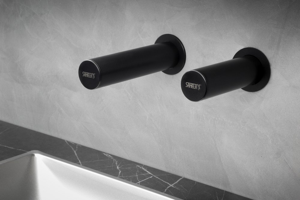 SLZN 83EVR - obj. č. 85839 - černé nerezové ramínko s dávkovačem mýdla a elektronikou, úchytová deska, přívodní hadička a kabely, čerpadlo na mýdlo a nádržka na mýdlo 1 l, ochranná trubka 80 cm, SLZ 07 - napájecí zdroj do zásuvky 230 V AC/ 24 V DC, montážní rám SLR 24