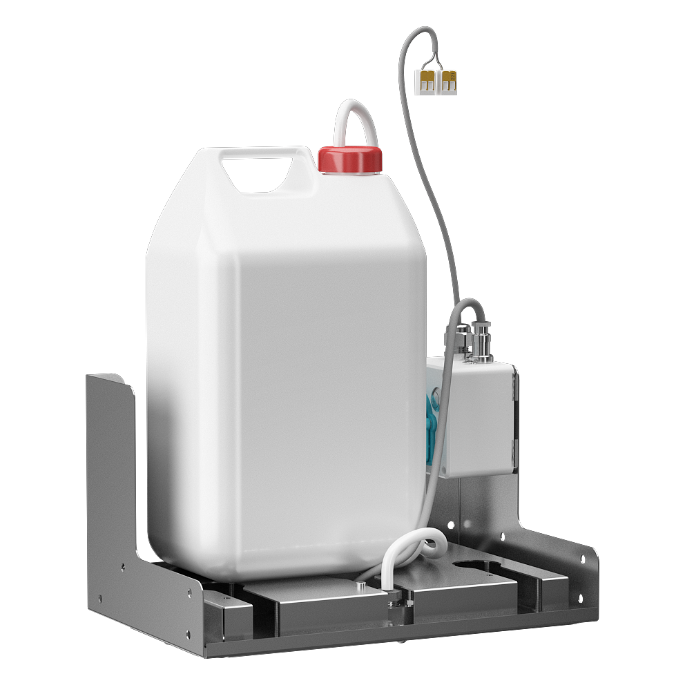 SLZN 84J - obj. č. 85848 - nerezový montážní držák s dávkovačem dezinfekce a elektronikou, 5 l kanystr na dezinfekci, přívodní hadičky, čerpadlo na dezinfekci